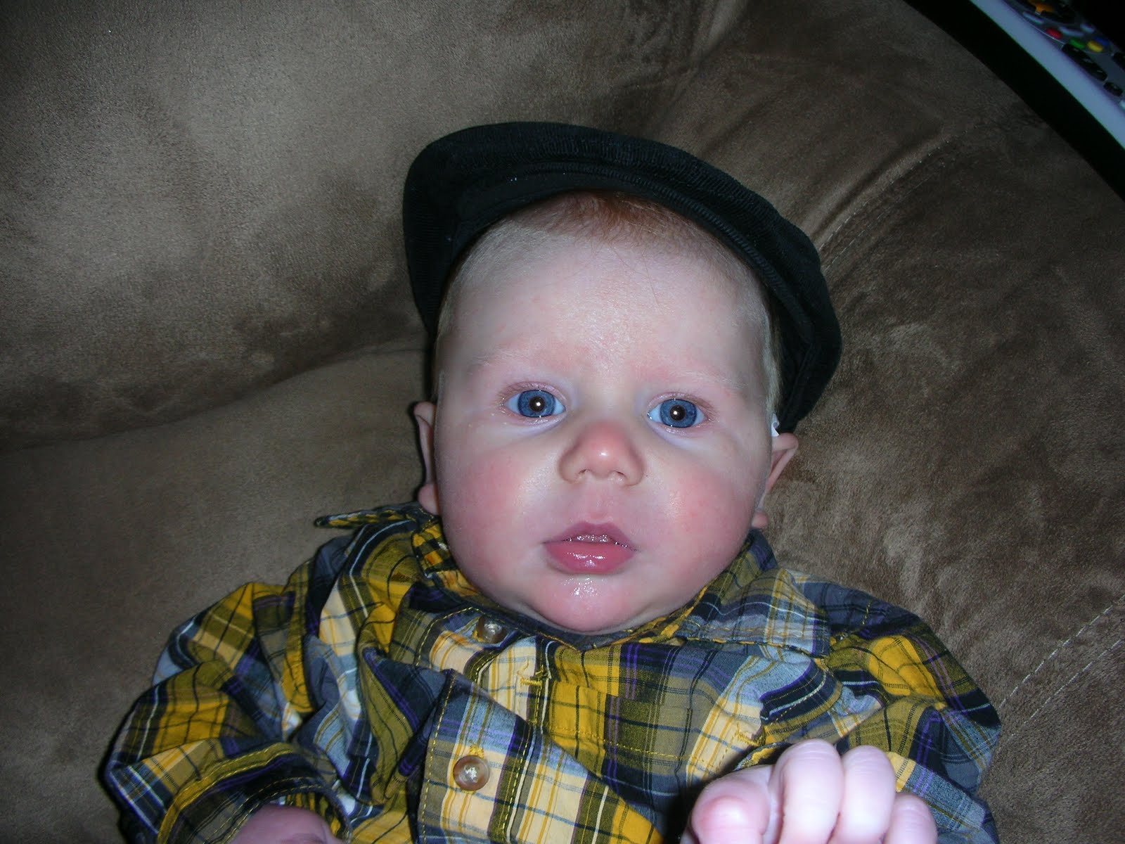 We had a tiny photo shoot with Landon this Sunday. His Aunt Stephanie gave him this adorable outfit. He looks so cute. His hat of course didn't stay on - so after church, I put it on and then carried him all around showing him off b/c I thought everyone needed to see him that day. :)